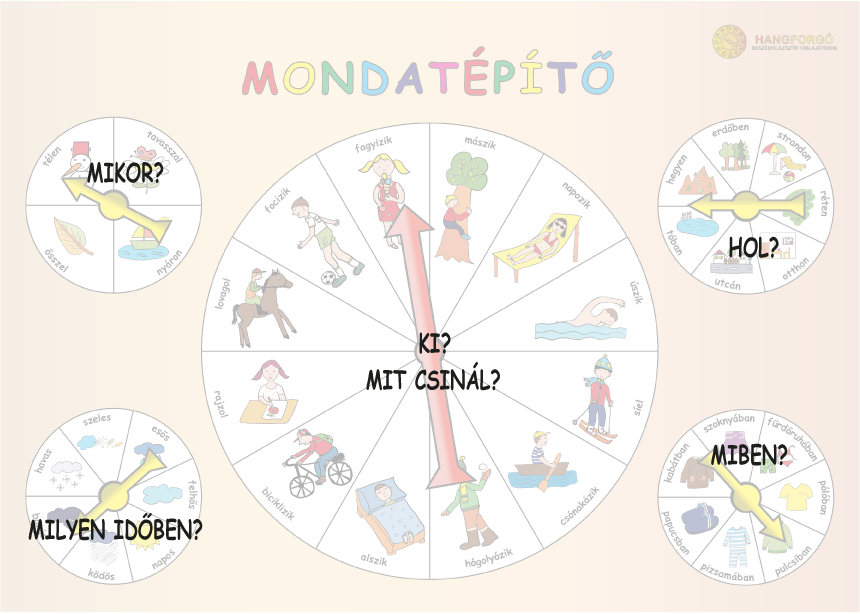 A mondat úgy épül fel, hogy pörgetéssel válaszolunk a következő kérdésekre:
